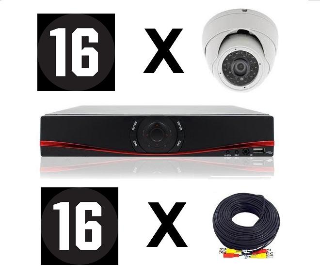 Kabler, strømforsyninger, 16 kanal DVR (Digital Video Recorder) boks. osv.