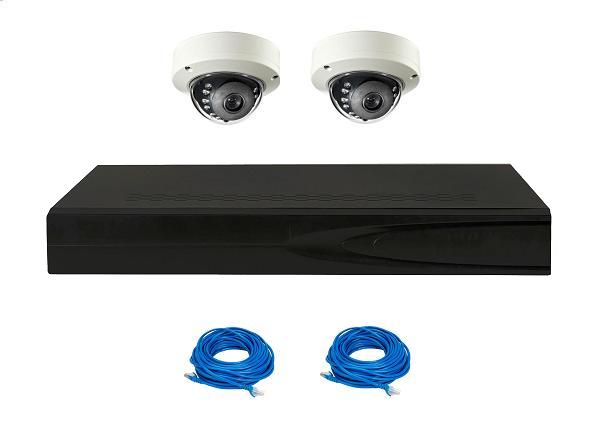 Komplet high-end 1,3MP digital videoovervågning udendørs / indendørs overvågningssæt med 2 x vind og vejrtætte dome/kugle IP PoE kameraer med IR dioder til 15 meters nat optagelser.