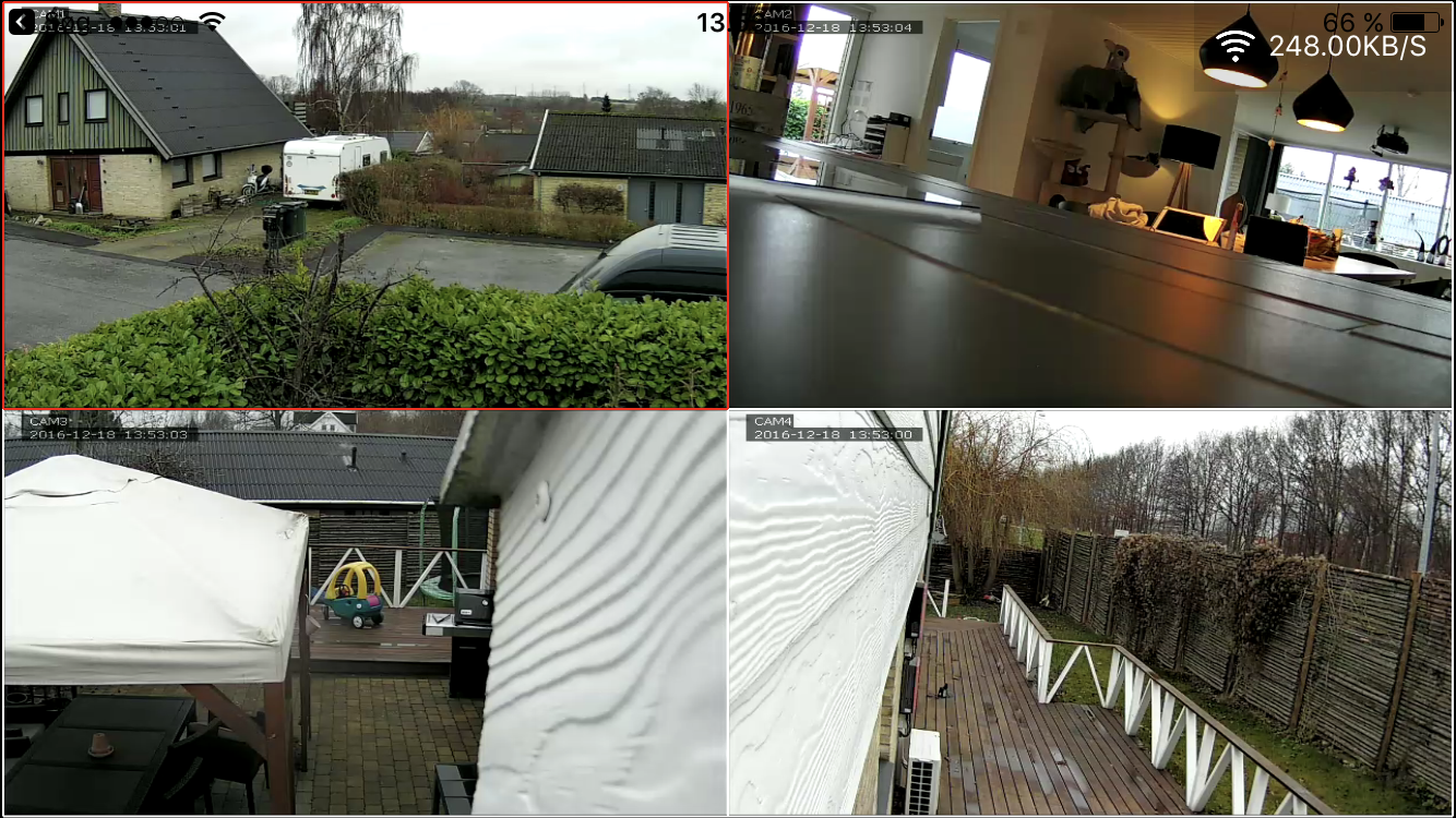 Vores optagerbokse er indkodet med individuelle ID numre der betyder, at ved at indtaste denne i medfølende gratis app. (samt din kode) kan opnå forbindelse til dine kamera overalt i verden uden besvær.